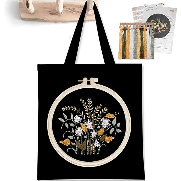 Amazon Com Homiton 2 Pack Embroidery Kit Canvas Tote Bag With Patterns For Beginners Personalized Canvas Bag Cross Stitch Kits Bamboo Embroidery Hoops Tools English Instruction For Diy Black White